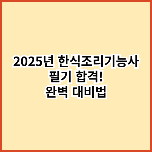 ✅ 2025년 한식조리기능사 필기, 단기 합격 전략 공개!